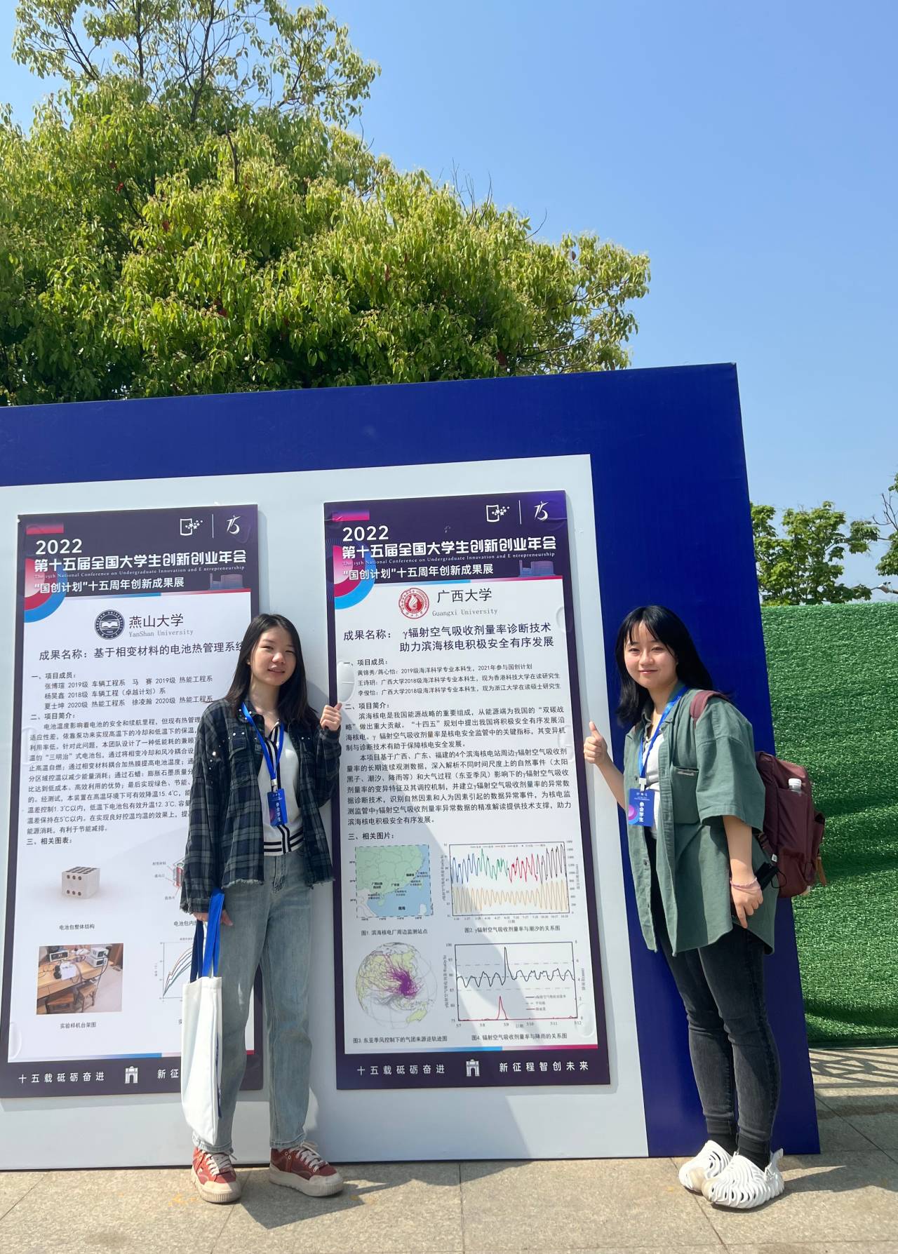 图3 2019级本科生黄锦秀同学与2018级本科生王诗玥同学参加展板报告