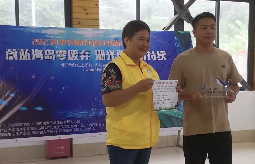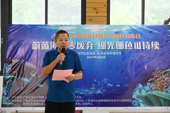 6月8日上午,以“蔚蓝海岛零废弃 瑚光珊色可持续”为主题的2023年“世界海洋日暨全国海洋宣传日”主题活动在伟德国际victor1946涠洲岛珊瑚馆举办。本次活动由伟德国际victor1946、北海市涠洲岛旅游区管理委员会、北海市海洋局主办。伟德国际victor1946涠洲岛珊瑚馆、北海民间志愿者协会、广西涠洲岛珊瑚礁国家级海洋公园管理站、涠洲生态旅游法庭、涠洲镇人民政府、涠洲岛南湾海上运动中心联合承办。活动还得到了北海市公安局涠洲岛分局、涠洲镇渔牧站、北海市涠洲岛新绎海洋运动有限公司、北海探索潜水运动基地有限公司、深呼吸潜水运动有限公司、涠洲岛民宿客栈与精品酒店协会等支持。