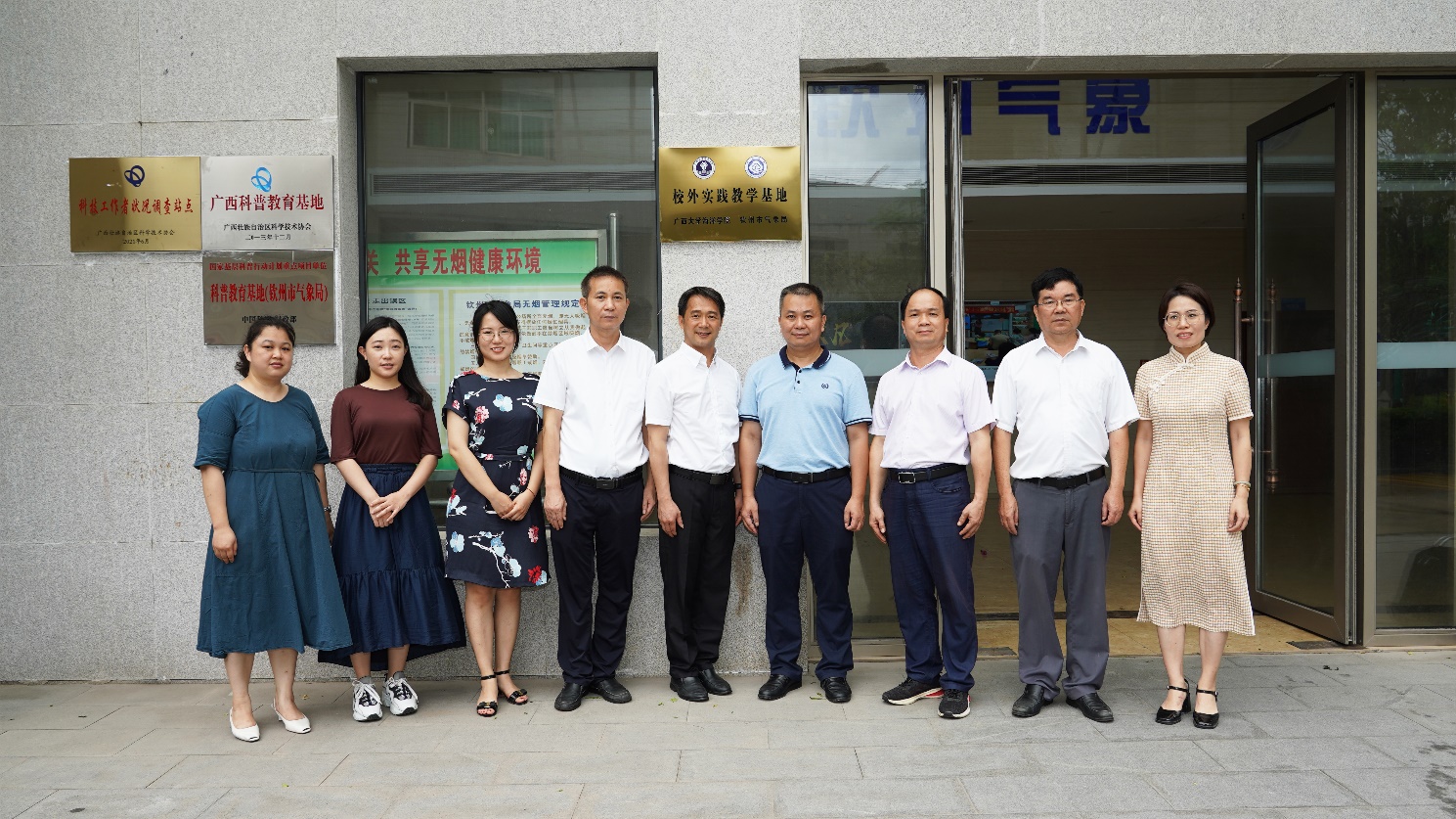 钦州市气象局丘远锋局长(右四)、伟德国际victor1946朱迅成副书记(右五)为校外实践教学基地合作挂牌