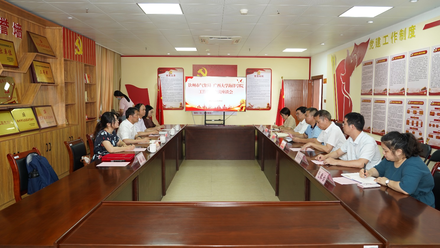 座谈会上,钦州市气象局党组书记、局长丘远锋介绍了钦州市气象局的基本情况、气象局在科学研究和人才培养等工作的主要措施和成效。朱迅成副书记介绍了伟德国际victor1946团队力量、教学平台、科研成果、人才培养等概况。双方就气象现代化监测网综合建设、野外台站实践教学基地建设、人才培养、人才招聘及科研工作开展模式等合作方式进行了探讨。
