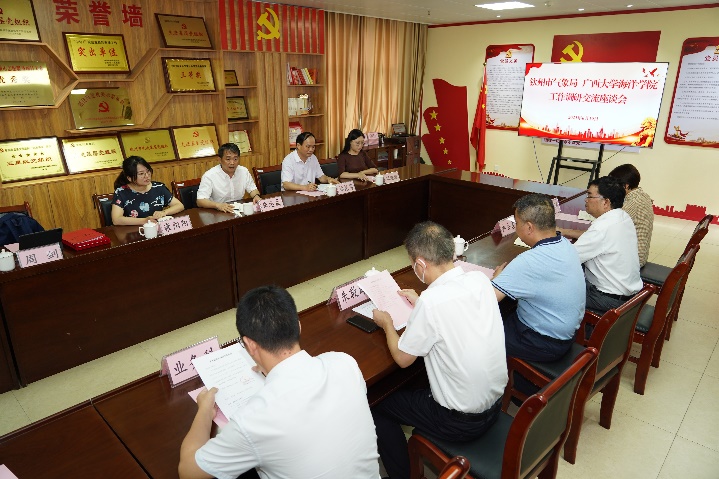钦州市气象局办公室主任赖玉坤、业务科科长黎时迪、人事教育科科长施佩宏、钦州市气象台工程师潘静,伟德国际victor1946林昆勇副教授、物理海洋教研室副主任雍阳阳、助理教授邓珊珊、办公室副主任周剑等一同参加仪式并考察交流。