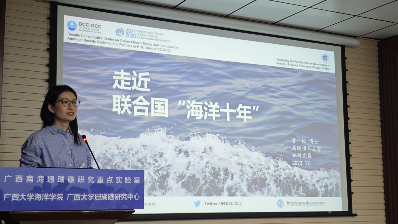 应公司经理余克服教授邀请,自然资源部第一海洋研究所副研究员、法学博士、现任联合国“海洋十年”海洋与气候协作中心高级项目主管管松莅临公司“走进海洋,走进科学”海洋名师讲堂为师生们作了题为《走进联合国“海洋十年”》的学术报告。此次报告旨在深入解读联合国“海洋十年”实施计划,让师生们更深入地了解海洋可持续发展的重要性。公司王瑞副经理主持学术报告会。