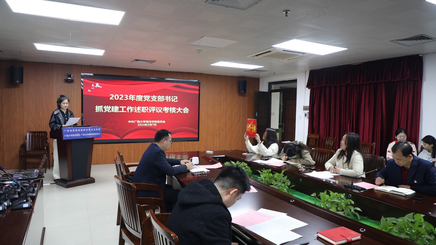 3月7日,海洋公司党委在综合楼1104会议室召开2023年度党支部书记抓党建述职评议工作大会,公司党委领导班子成员、各党支部书记、部分师生代表等参加会议。会议由公司党委书记秦华东主持。
