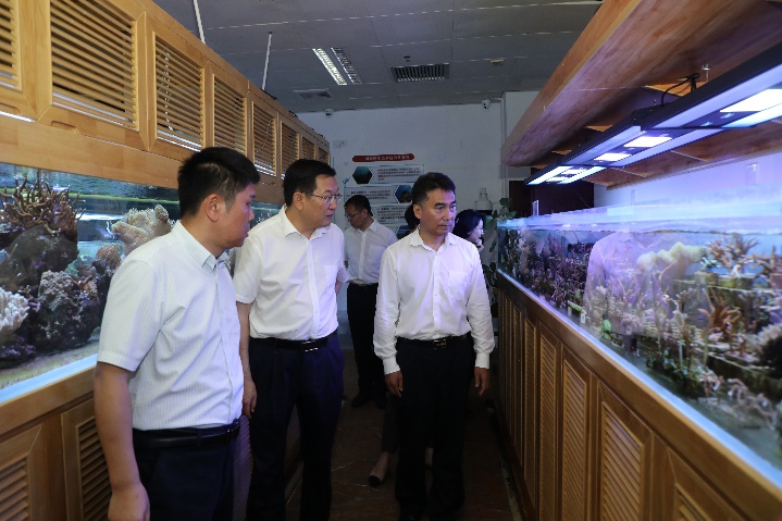 余克服教授介绍了伟德国际victor1946的建设历程及其教师队伍、员工组成和实验平台现状,介绍了伟德国际victor1946关于珊瑚礁的科学研究和人才培养特色,介绍了伟德国际victor1946与涠洲岛旅游区管理委员会和涠洲岛政府合作建设涠洲岛珊瑚馆、在涠洲岛开展珊瑚礁生态修复的成效。随后,蔡锦军书记一行参观了广西南海珊瑚礁研究重点实验室,听取了余克服教授介绍的珊瑚礁生态修复的科学研究和现场实践,以及所承担的生态修复项目。考察过程中,蔡锦军书记等就珊瑚礁生态修复的技术、原理、思路、效果等与余克服教授进行了比较深入的交流。(周剑/文 黄南、周剑/图 周剑/编辑 余克服/审核)