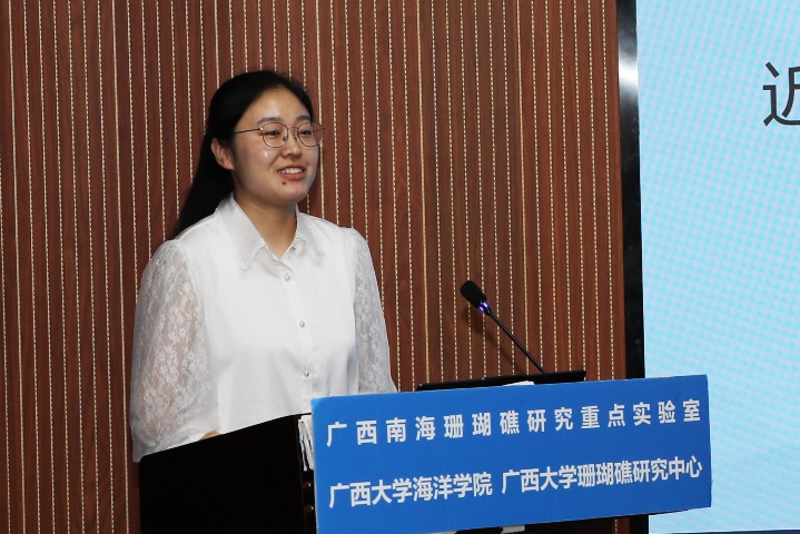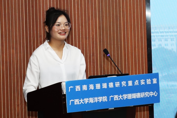 葛瑞琪同学(导师:余克服教授、梁甲元副教授)主要对海洋酸化影响下的造礁石珊瑚进行了室内模拟研究,其论文题目是《涠洲岛强壮鹿角珊瑚对海洋酸化的响应及耐受性研究》。读研期间,参与:国家自然科学基金重大项目课题(批准号:42090041)、国家自然科学基金重点项目(批准号:42030502)、广西科技创新和基地人才专项项目等课题的研究,并以第一作者在国际期刊Frontiers in Microbiology上发表一篇SCI论文:《Regulation of the coral-associated bacteria and Symbiodiniaceae in Acropora valida under ocean acidification》。