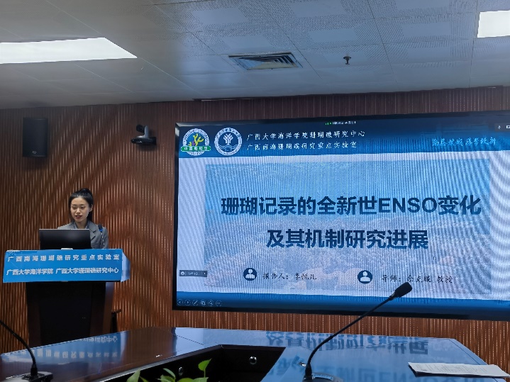 论坛由中山大学大气科学公司、bv伟德国际1946特聘专家韦骏教授主持,浙江省水利河口研究院张骏博士和华东师范大学博士研究生熊媛分别作了题为《沙泥混合海床波致液化及其悬沙机理研究》和《西沙群岛珊瑚礁地貌面积近 30 年变化历史的遥感分析》的邀请报告。同时,广西南海珊瑚礁研究重点实验室江蕾蕾、李悦儿、杨宇凡和何志伟等研究生则分别作了口头报告。最后经评议,江蕾蕾博士以题为《南海北部过去2000年典型暖期海表温度的季节性和年际变率》获本次会议优秀报告奖。