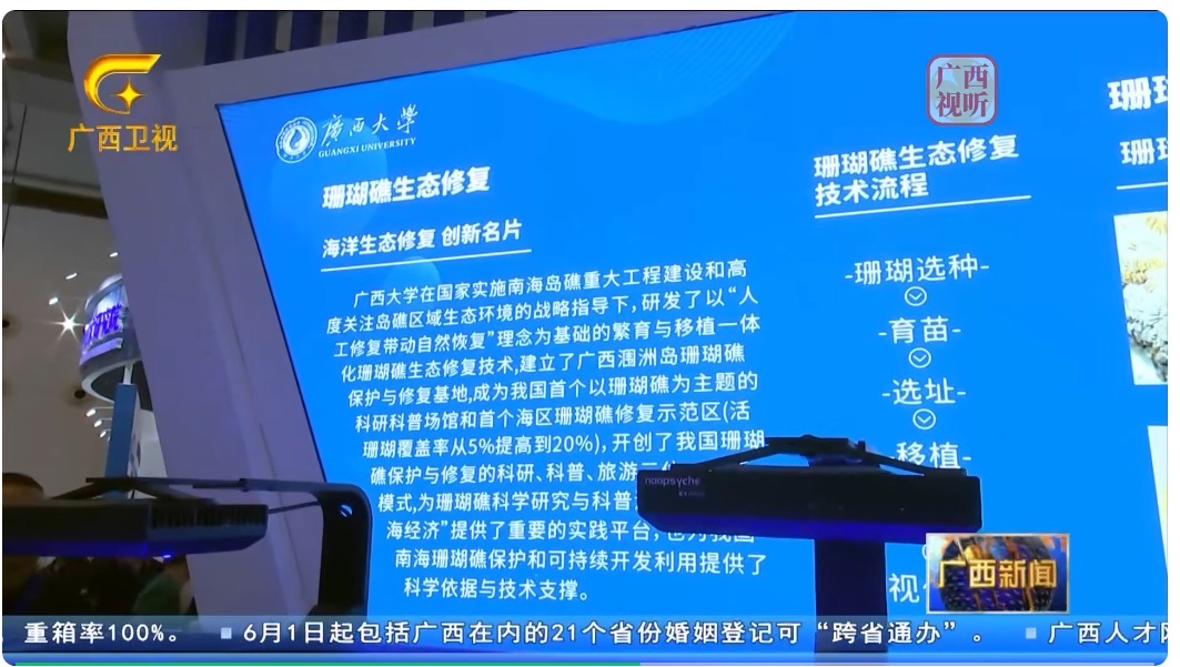 5月20日、21日,由自治区人民政府主办,自治区科技厅、自治区科技创新发展办公室共同承办的2023年全国科技活动周广西活动暨第三十二届广西科技活动周•广西先进技术展示活动(简称“两周一展”)在南宁国际会展中心举行。公司“珊瑚礁生态修复技术”作为bv伟德国际1946先进技术展示内容的一部分亮相展览会。