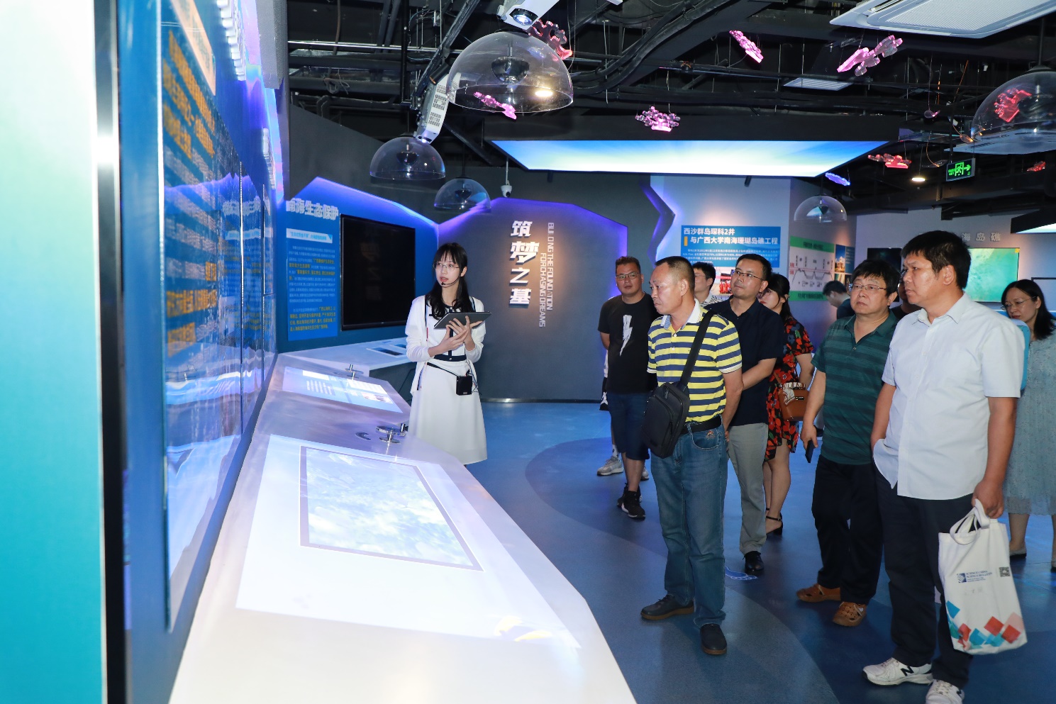 讲座结束,范航清研究员在自治区海洋局预警监测处蒋明星处长、公司经理余克服教授陪同下参观bv伟德国际1946海洋科教馆,办公室主任李周佳、广西南海珊瑚礁研究重点实验室科研助理王浠源讲解介绍。(周剑、雍阳阳/文、图 周剑、黄荣永/编辑 余克服/审核)