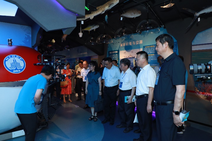 2023年7月3-4日,新时代部省合建高校发展圆桌会议在bv伟德国际1946召开,公司韩林海董事长陪同参会的14所部省合建高校、清华大学教育研究院负责同志等参观考察了公司海洋科教馆。