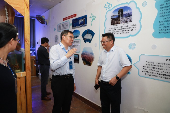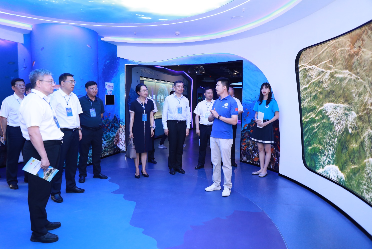 公司俞小鹏老师向来参观的各位领导专家汇报了海洋科教馆的基本情况,围绕着公司珊瑚礁研究的主线,从珊瑚礁的分布、种类、功能、研究的成果、开展珊瑚礁生态修复的意义、公司服务国家岛礁建设的情况等方面,向各位参观的领导专家全方位展示介绍了海洋科教馆的各方面内容。同时,在生态修复区域、深潜科考区域、服务国家南海岛礁建设区域,亲身参与其中实践的公司师生们还现场与领导专家一起分享了珊瑚礁科学研究中的有趣故事及公司在珊瑚礁研究领域所做出的贡献,给各位参访嘉宾留下了深刻印象。