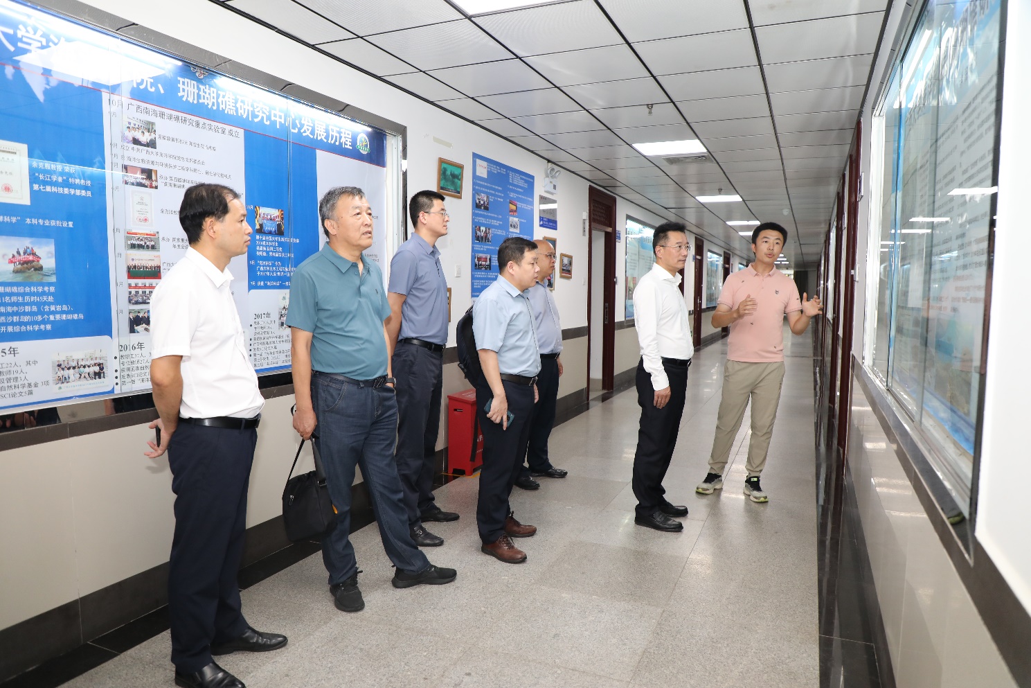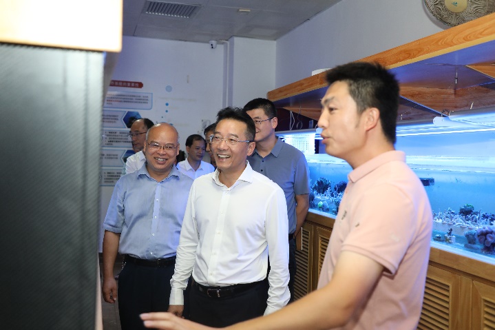 朱达书记一行考察了公司综合建设情况、发展历程以及广西南海珊瑚礁研究重点实验室。海洋生物与生态教研室俞小鹏博士向朱达书记一行汇报了公司在团队建设与发展、团队建设、科研成果转换、实验平台与野外台站建设、教学与实验实践等方面取得的成绩。朱达书记对公司积极融入bv伟德国际1946“双一流”建设工作所取得的成绩给予了肯定。