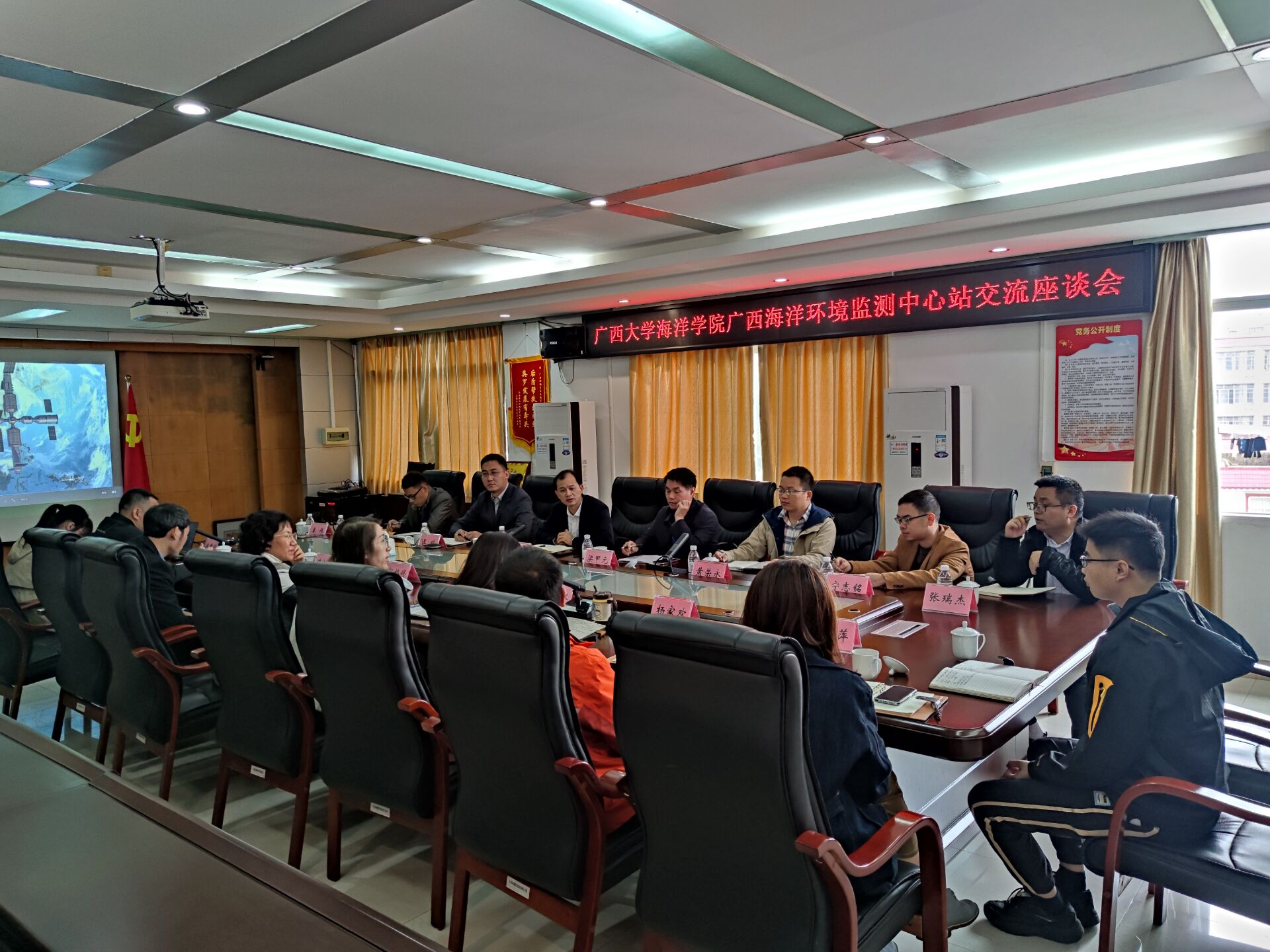 2023年12月5日上午,bv伟德国际1946海洋公司党委书记秦华东率队到广西海洋环境监测中心站(以下简称“中心站”)进行考察交流,并同中心站郭梅修站长、蓝文陆副站长和各科室负责人开展座谈。