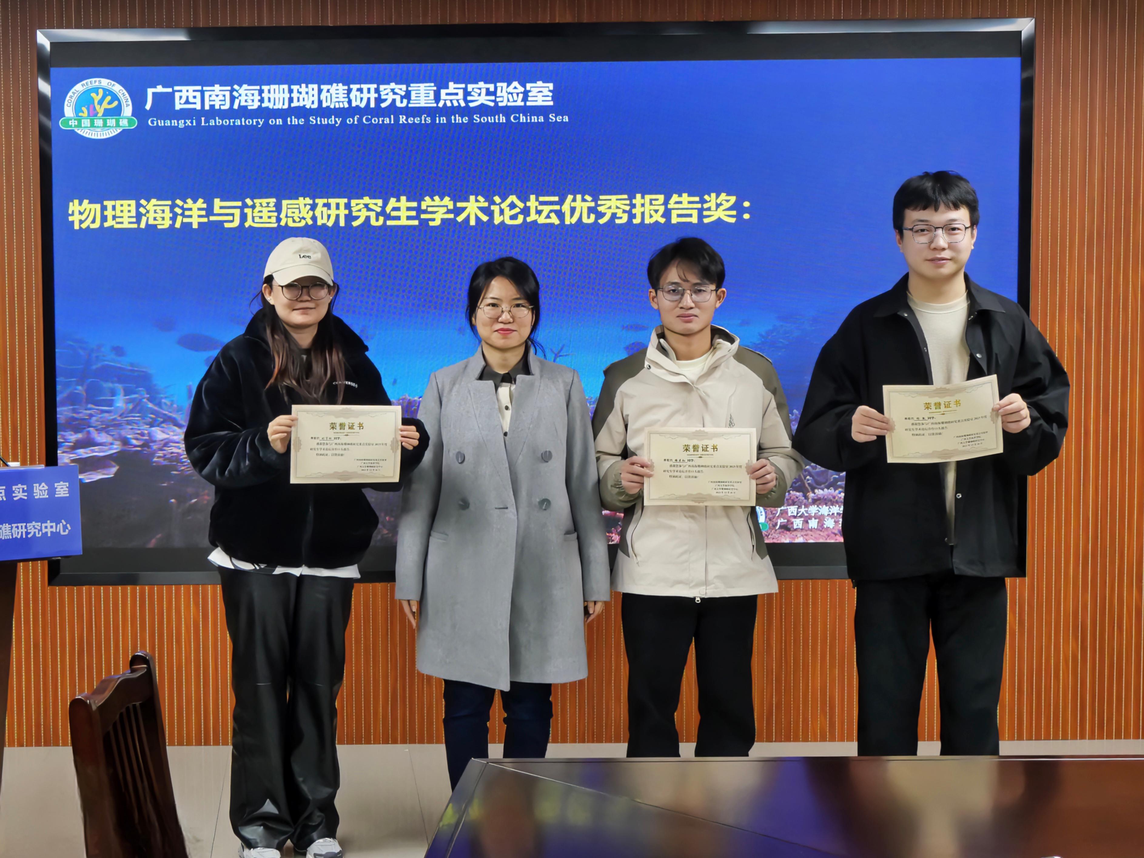 2023年12月16日上午,广西南海珊瑚礁研究重点实验室物理海洋与遥感研究生学术论坛通过线上及线下相结合的方式顺利召开。