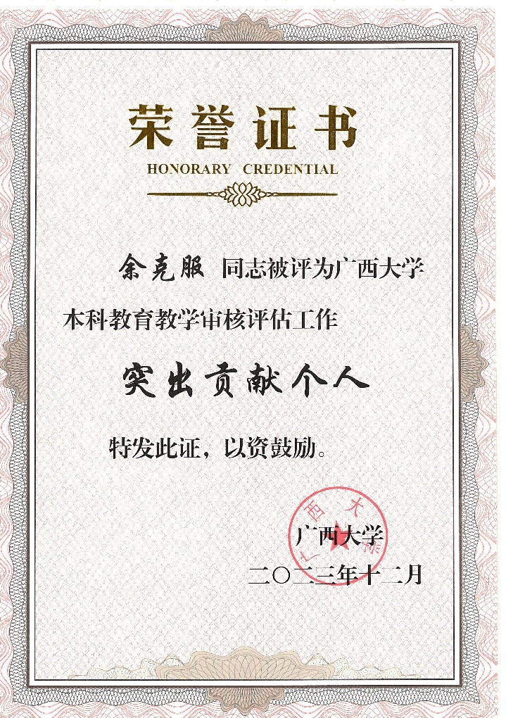 余克服教授获评本科公司产品审核评估工作突出贡献个人