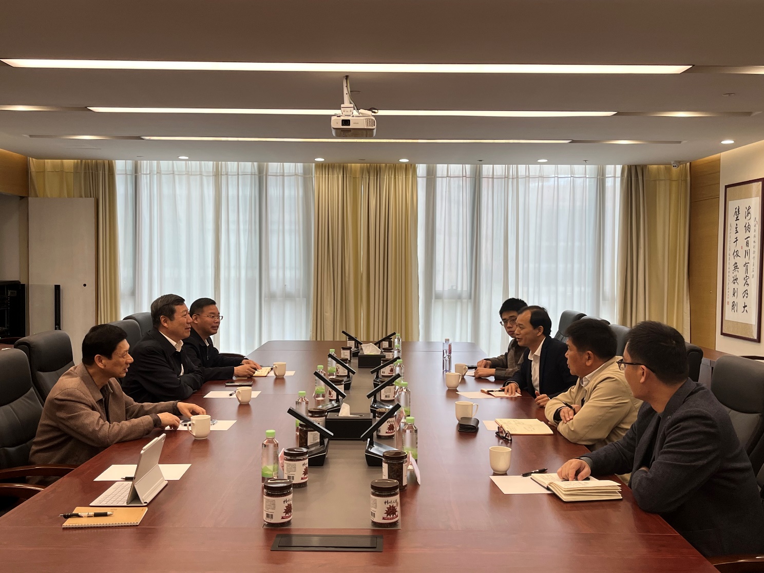 2024年1月4日上午,公司经理余克服教授与党委书记秦华东率队到广西海洋产业发展促进会(下称“促进会”)开展考察交流,并同促进会白汝亮会长、黎济宁副会长、刘日勇秘书长开展座谈。