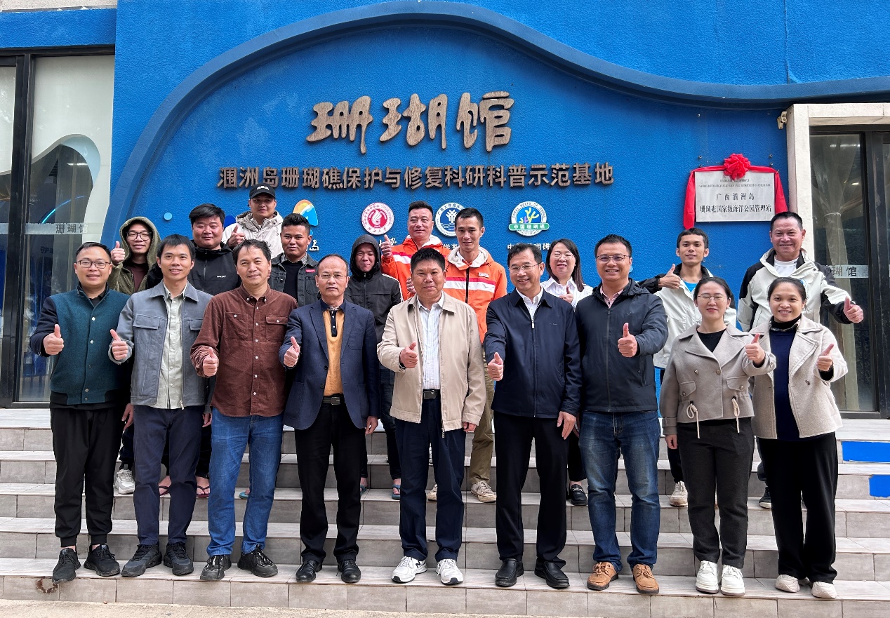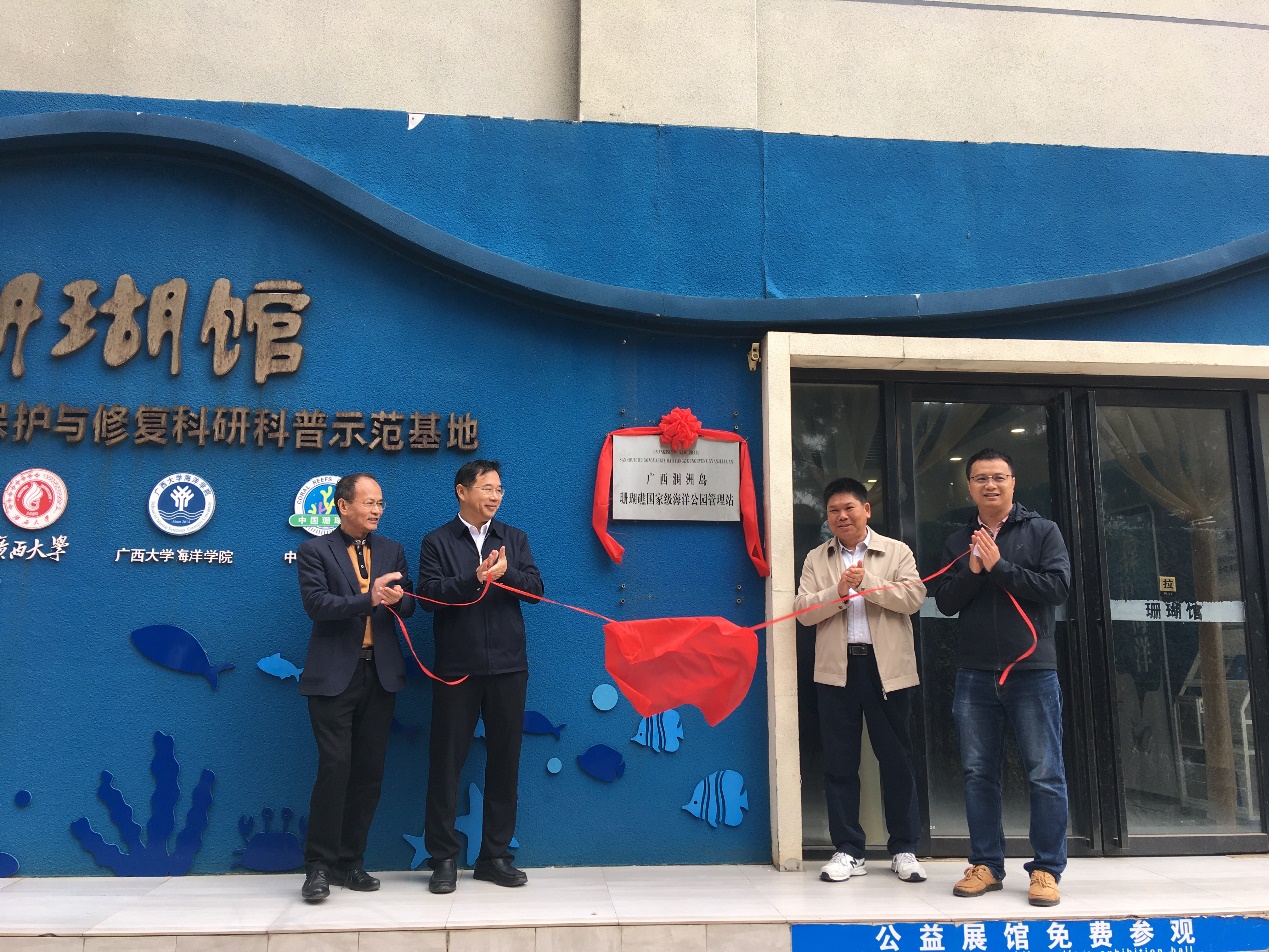 2024年1月3日上午,“广西涠洲岛珊瑚礁国家级海洋公园管理站”(下文简称“管理站”)在伟德国际victor1946涠洲岛珊瑚馆举行揭牌仪式,公司经理余克服教授、北海市海洋局局长欧其全、涠洲岛旅游区党工委副书记沈振华共同出席揭牌仪式。