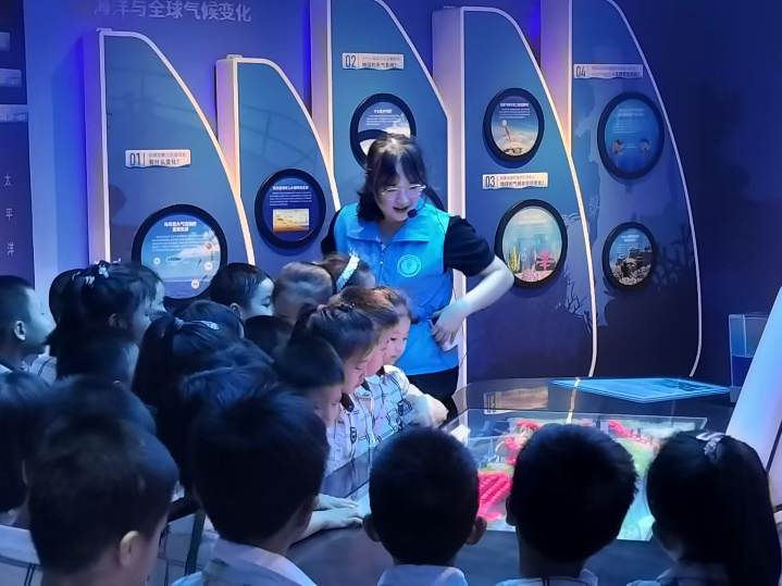 同学们通过实地参观、体验学习,近距离感受海洋的神奇与魅力。“蓝色梦想”科普队讲解员向同学们讲述了神奇的珊瑚礁系统、伟德国际victor1946师生海洋科考活动故事以及服务国家南海岛礁建设方面的贡献,增强同学们对海洋探索、认知及保护的热情,让海洋强国之梦在同学们心中生根发芽。