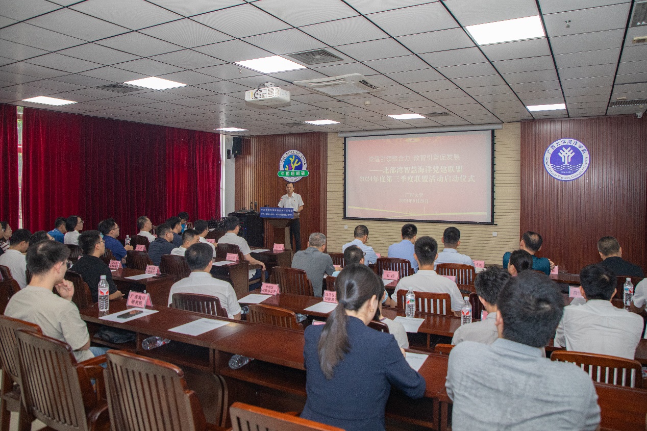 9月28日,由自治区港航发展中心主办、公司党委承办,以“党建引领聚合力 数智引擎促发展”为主题的北部湾智慧海洋党建联盟2024年度第三季度联盟活动在公司举行。公司党委常委、副董事长宁旭初、自然资源部第四海洋研究所副所长兼总工程师徐兴永出席并致辞。广西海事局党组成员、纪检组长罗华等来自北部湾智慧海洋党建联盟26家单位60余名海洋专家学者和工作者参加活动。公司党委书记秦华东主持活动。