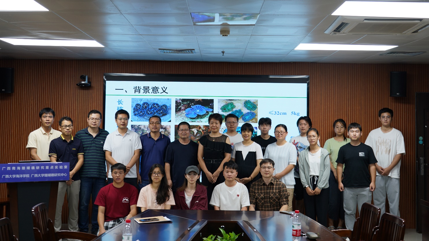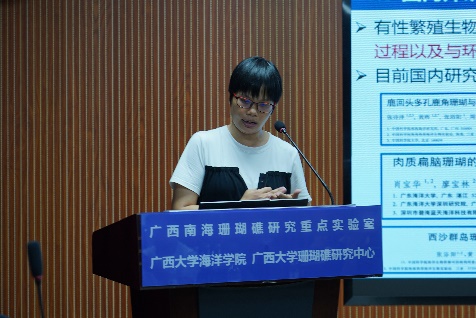 公司海洋生物与生态教研室韦芬博士汇报了涠洲岛造礁珊瑚有性繁殖生物学研究进展,重点介绍了涠洲岛造礁珊瑚有性繁殖的跟踪观察、产卵时间预测、产卵过程、体外受精、珊瑚虫变态发育等研究内容,并对当前研究中存在的技术难题向南海所两位老师请教。