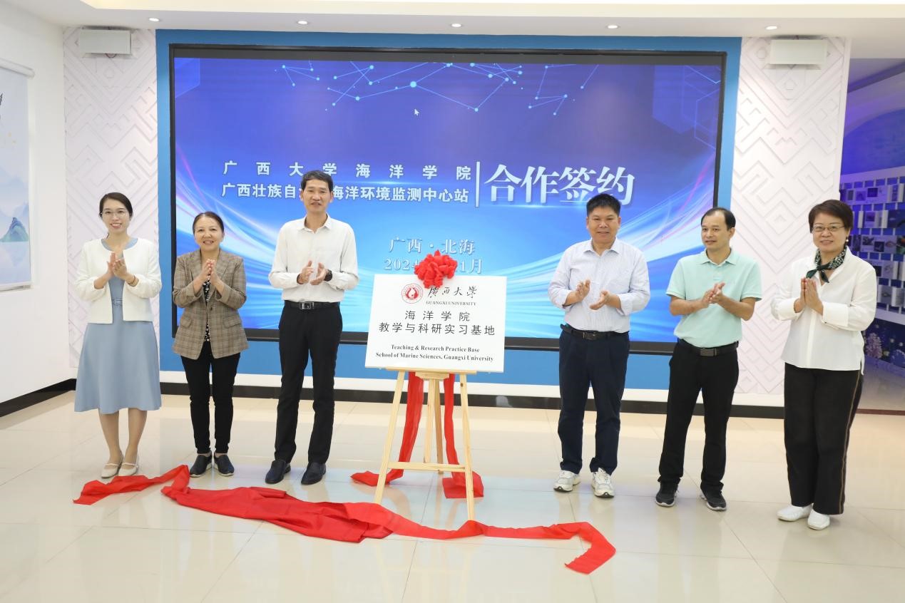 公司学术带头人徐向荣教授,党委副书记黄学勇,海洋环境与化学教研室主任张瑞杰副教授、潘长桂副教授,广西壮族自治区海洋环境监测中心站业务科室中层以上干部、博士出席了本次签约揭牌活动。