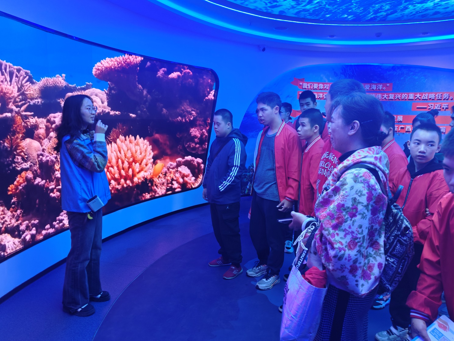 本次活动,是海洋科教馆落实场馆育人的具体举措,公司还充分利用海洋的天然优势,设计并组织开展了一系列残健融合研学活动,为精神残疾人及亲友开展基于海洋的自然康复疗愈和科普教育;为孤独症群体及其家庭带来心灵上的慰藉与成长。人民网、中国新闻网、广西卫视新闻频道都对本次科教馆的参观活动进行了报道。
