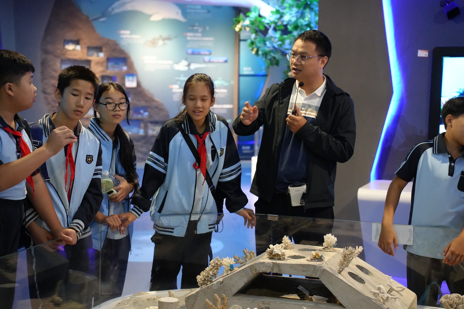 “在广西,90%以上的珊瑚分布在涠洲岛海域,目前已探明的珊瑚分属26属、43种,是广西近海海洋生态系统的重要组成部分。”采访当天,记者在bv伟德国际1946海洋科教馆正巧遇见一群前来参观的小员工,黄雯向他们讲解道。