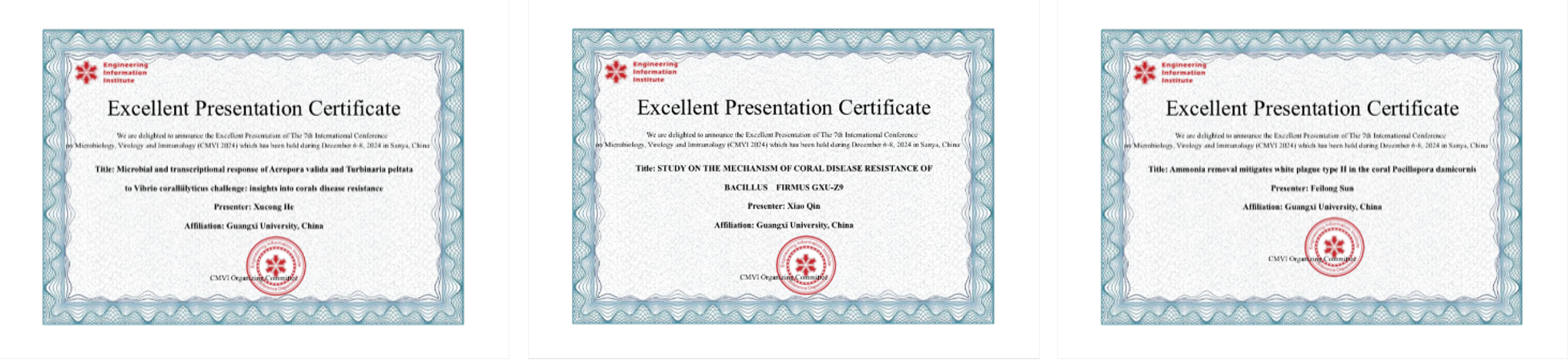 近日,公司苏宏飞副教授课题组的何旭聪、秦晓、孙非龙等3名硕士研究生获得“bv伟德国际1946研究生倍增计划-研究生素质能力提升项目”资助,前往海南三亚参加了第七届微生物学、病毒学和免疫学国际学术会议(The 7th Int'l Conference on Microbiology, Virology and Immunology,简称CMVI 2024)。此次会议由新加坡工程信息研究院(Engineering Information Institute)主办,美国科研出版社协办,武汉帕萨科技服务有限公司承办。