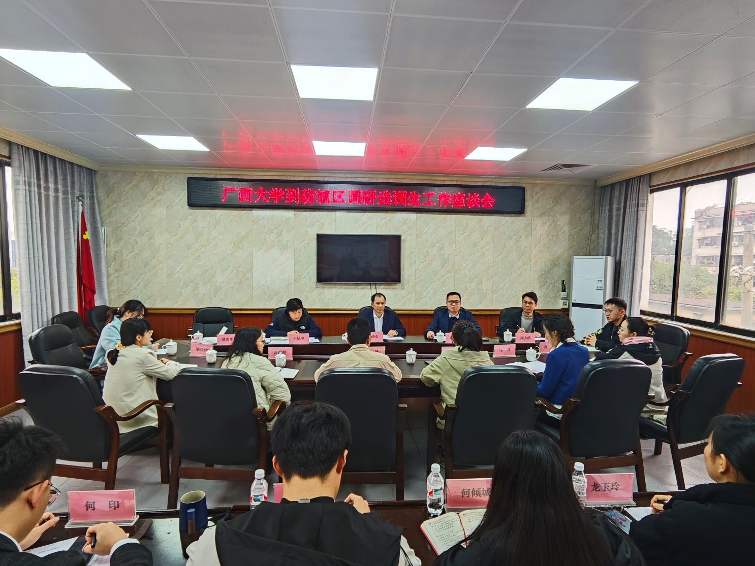 苏维介绍防城区选调生相关情况和人才培养具体举措。他表示,防城区选调生工作系统科学开展,在选录中坚持“需求为先”“人岗合一”,在培养中坚持“走在前线”“结对成长”,在管理中坚持“3+N”评价体系和“三个一”活动机制。希望通过此次活动进一步加强合作,深化沟通交流,共同探索选调生成长发展新路径,为区县发展培养输送更多高质量人才。