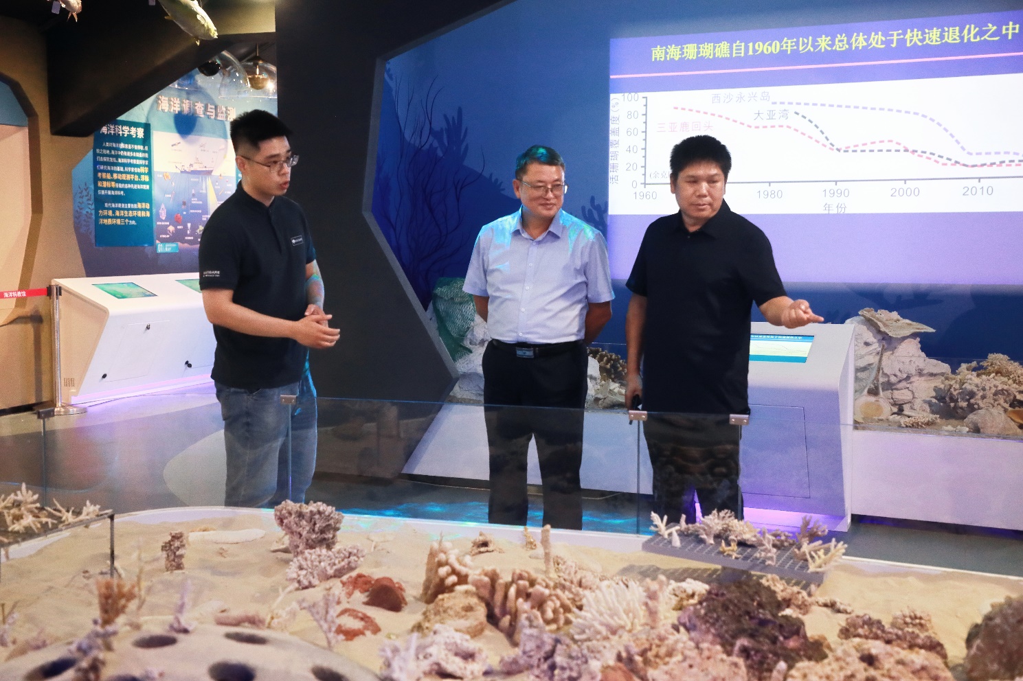 报告结束后,周文能教授先后听取bv伟德国际1946涠洲岛台站、三沙永乐龙洞台站及广西南海珊瑚礁研究重点实验室等科研平台的工作汇报,实地考察了伟德国际victor1946岛礁生态修复实验室、bv伟德国际1946海洋科教馆等实验基地,并与公司团队开展了深入交流。