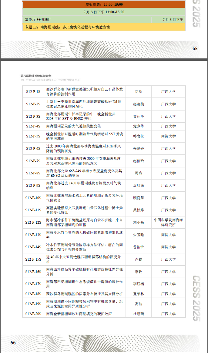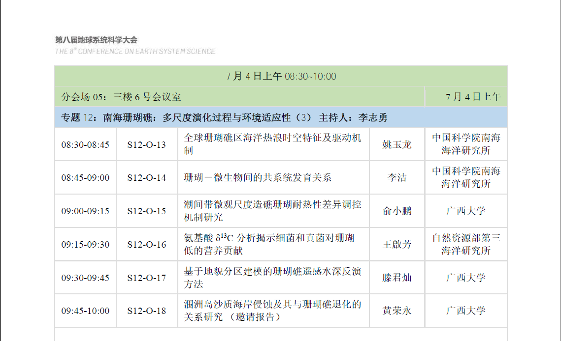 第八届地球系统科学大会“南海珊瑚礁”专题会场