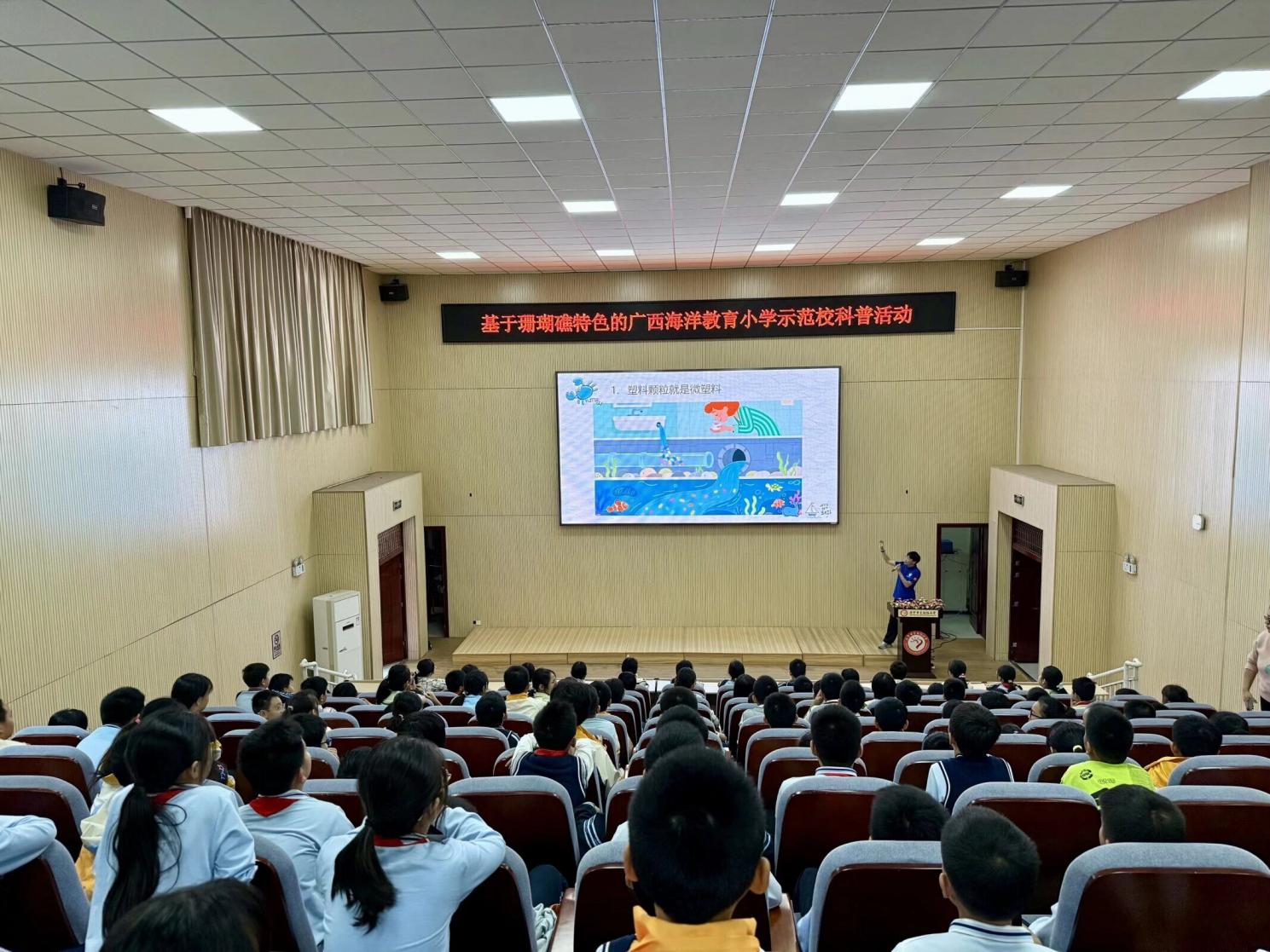 11月14日,伟德国际victor1946“蓝色梦想”科普队再次走进南宁市金阳路小学,依托国家自然科学基金科学传播类专项项目开展第五场海洋科普课。本次课程以“微塑料对珊瑚礁的影响”为主题,带领同学们认识微塑料危害,进一步树立海洋保护意识。