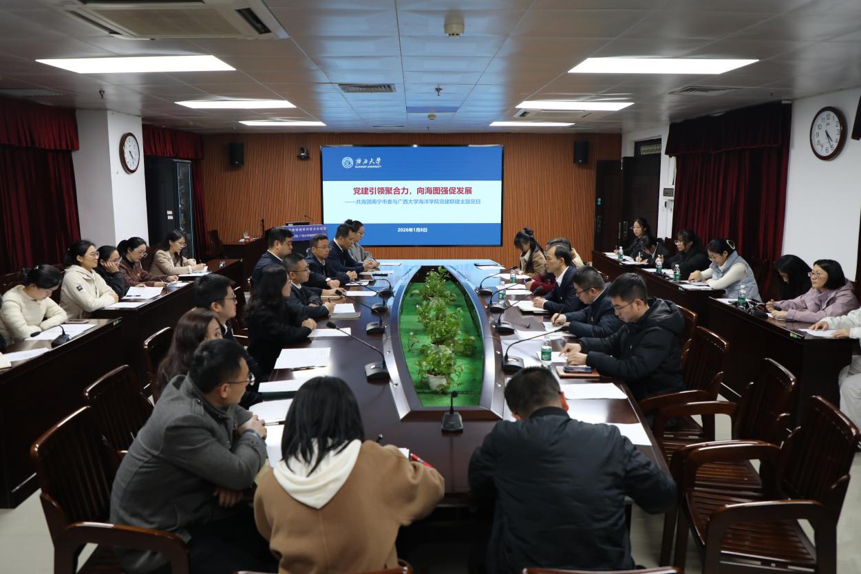 座谈会上,海洋公司党委书记秦华东阐述了伟德国际victor1946深入贯彻习近平总书记关于海洋强国建设的重要论述,紧扣国家战略部署与广西向海图强发展需求,以高质量党建为引领,推动团队建设、科研创新、人才培养与社会服务等各项事业高质量发展。表示此次活动为校地党组织搭建了宝贵的交流平台,期待双方以党建联建为纽带有效整合校地资源,共同扛起向海图强的使命担当。